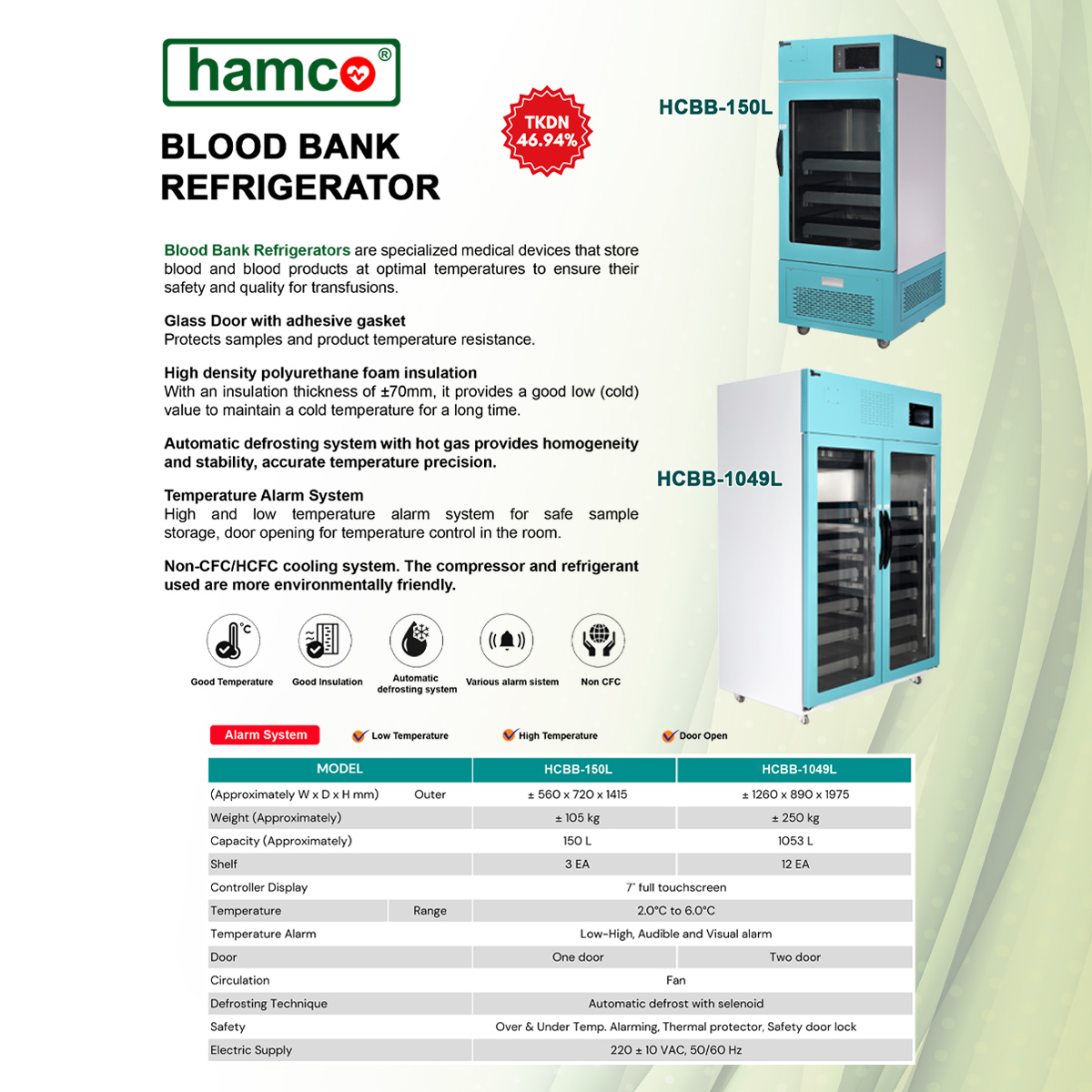 PT. Golden Globe Medica merupakan perusahaan importir dan distributor produk Blood Bank Refrigerator merk Hamco dan pemegang izin secara tunggal yang dikeluarkan oleh kemenkes RI. Segera hubungi kami untuk mendapatkan penawaran harga produk terbaik dari kami.