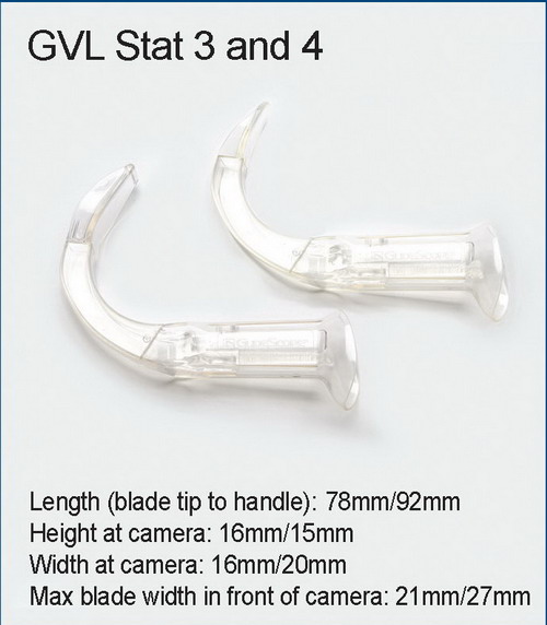 - GVL® Stat design based on current GlideScope® GVL®, which achieves a Cormack-Lehane Grade I or Grade II view 99% of the time